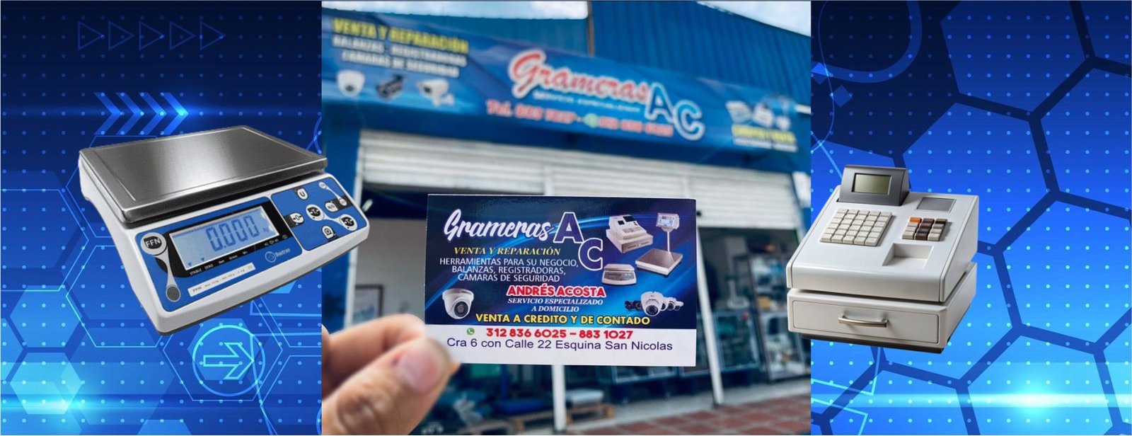 Grameras AC es una empresa caleña dedicada a la venta, reparación y mantenimiento de balanzas, cajas registradoras y sistemas de cámaras de seguridad. Contamos con un equipo técnico especializado que ofrece atención personalizada y servicio a domicilio en toda la región del Valle del Cauca. Nos destacamos por nuestra responsabilidad, puntualidad y compromiso con cada cliente, brindando soluciones precisas y confiables para negocios, tiendas y empresas. Además, ofrecemos opciones de venta a crédito y de contado, facilitando el acceso a equipos de alta calidad que garantizan el correcto funcionamiento de tus operaciones comerciales.
